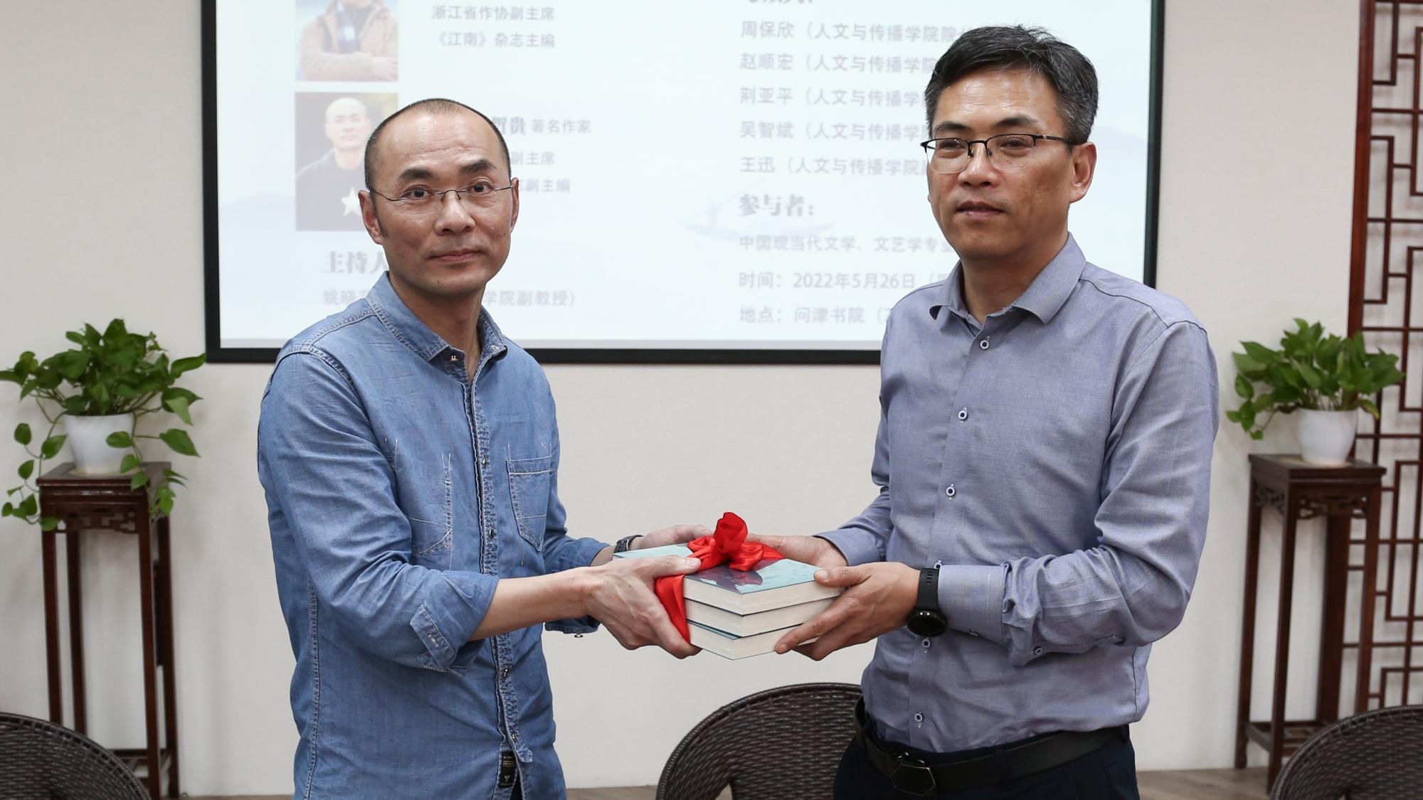 在问津书院举办了“作家进校园”系列的第五场活动。本次活动主题为“小说的理想”,活动邀请到了著名作家、浙江省作协副主席、《江南》杂志主编钟求是和著名作家、浙江省作协副主席、《江南》杂志副主编哲贵,91探花