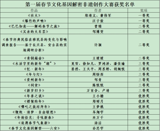 第一届春节文化基因解密非遗创作大赛颁奖仪式在教学楼A107a顺利举办。本次活动由中文系副系主任郁冲聪老师主持,黃咏梅教授、林香娥副院长、浙江日报“潮新闻”平台记者方涛、教学秘书原培英参加颁奖仪式。
