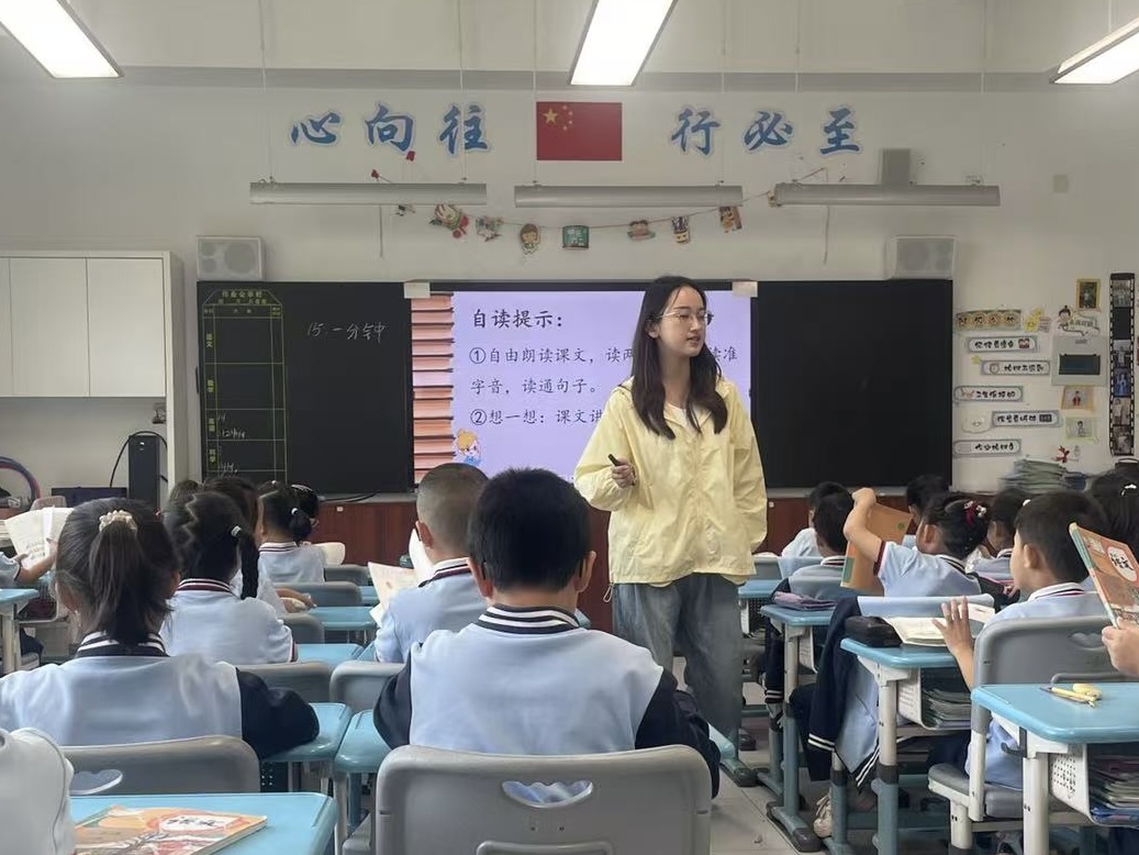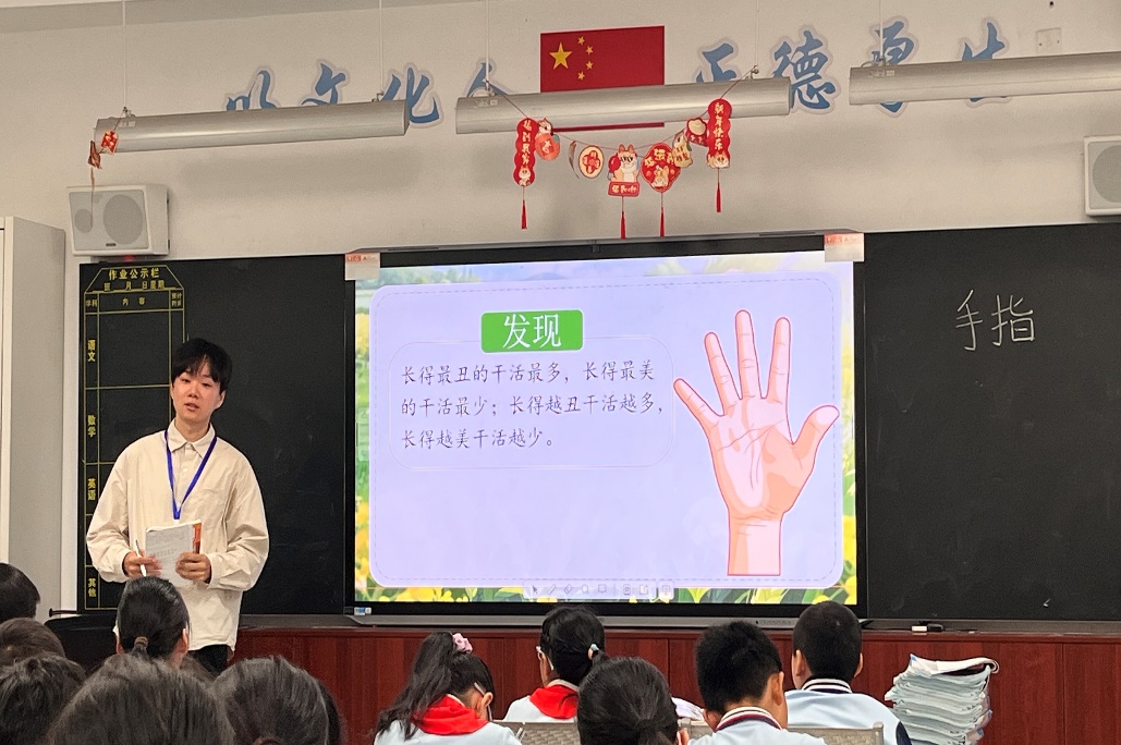 实习生王弘帜则以“恍惚”形容初为人师的神圣一刻:“喊‘上课’后,听到班长喊‘起立’,孩子们鞠躬齐呼‘老师好’,瞬间真切感受到教师身份的重量。”