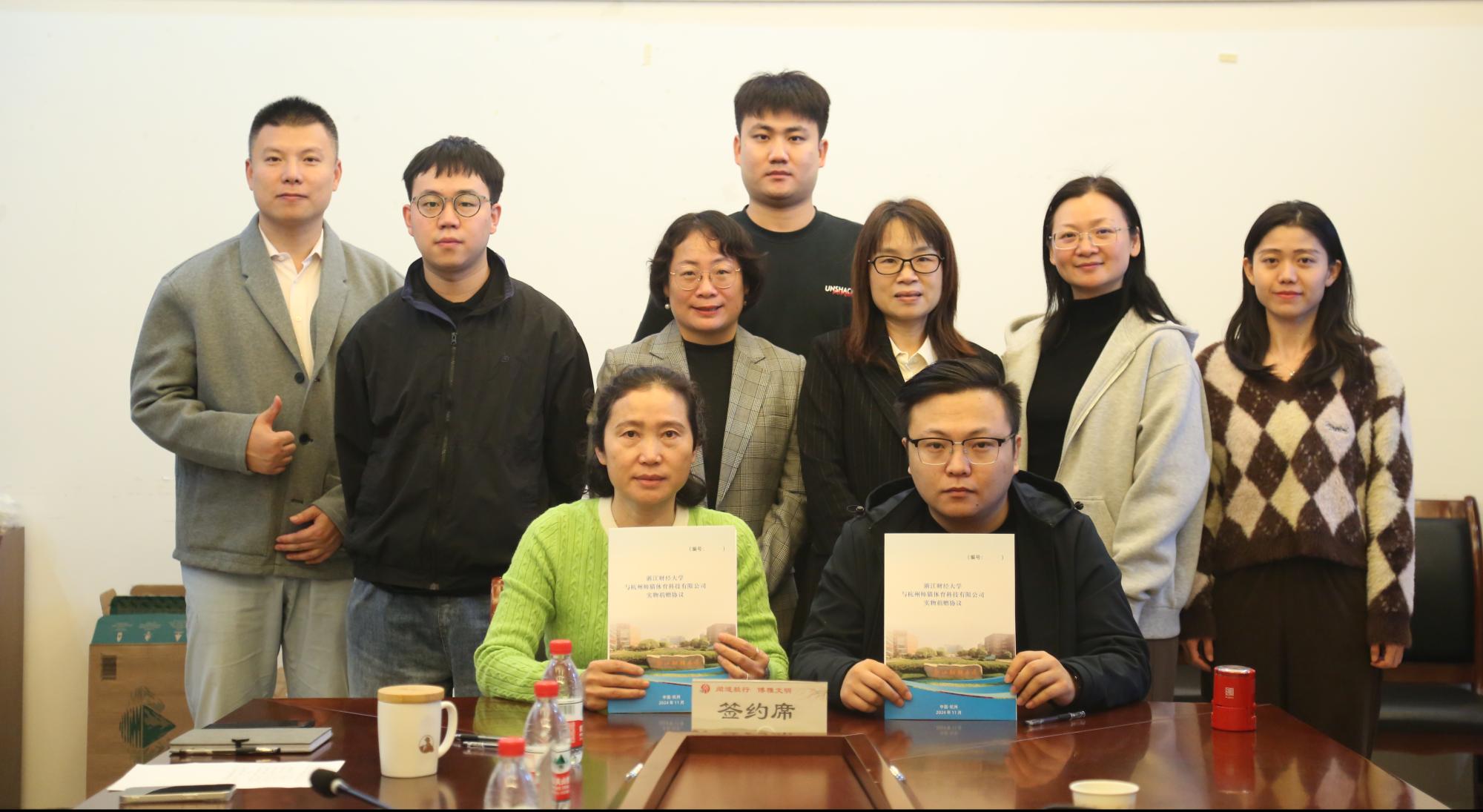 捐赠仪式上,罗金艳代表学院与杭州帅猫体育科技有限公司共同签署了实物捐赠协议。
