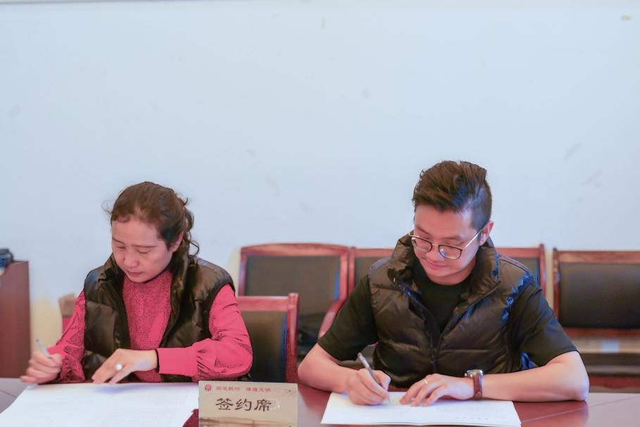捐赠仪式上,罗金艳代表学院与罗宾汉品牌管理有限公司代表李冠东签订了基金捐赠及实物捐赠协议。