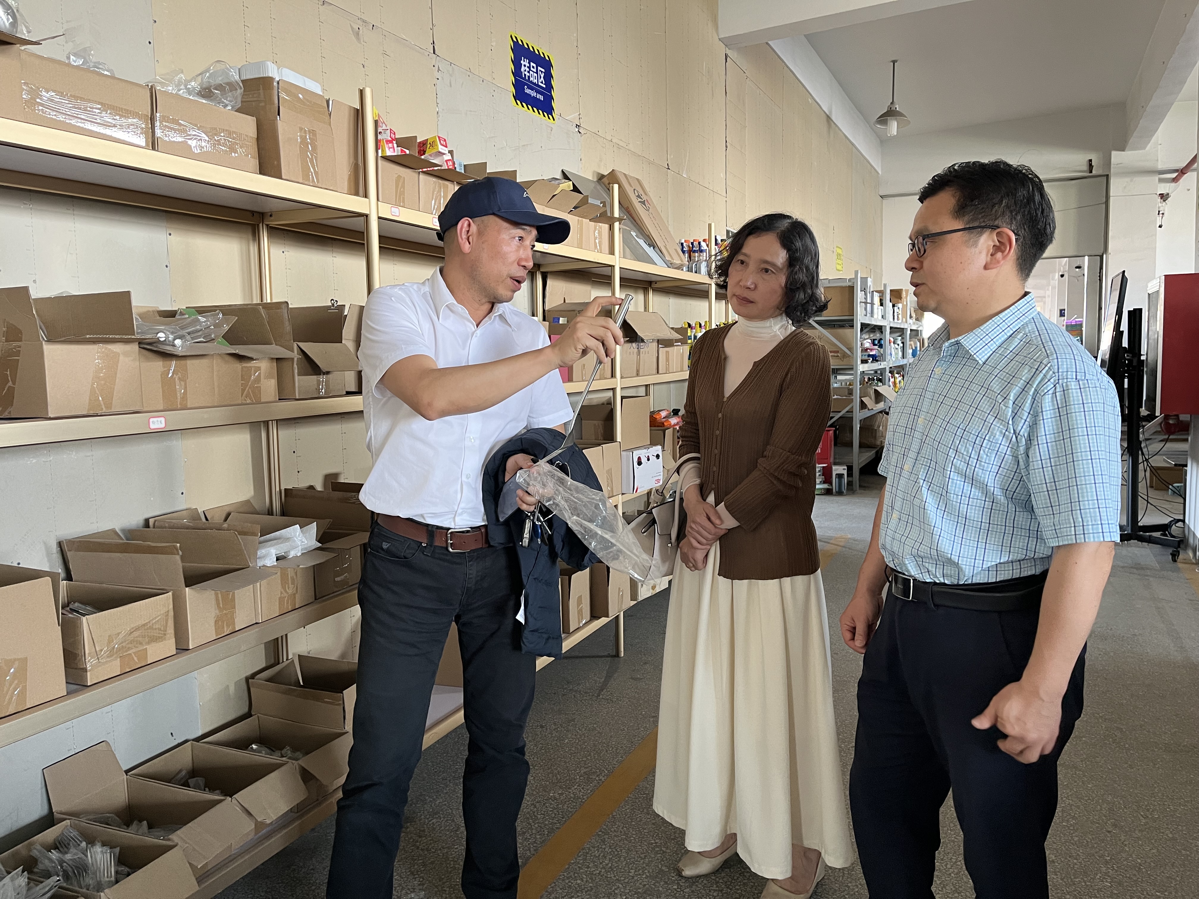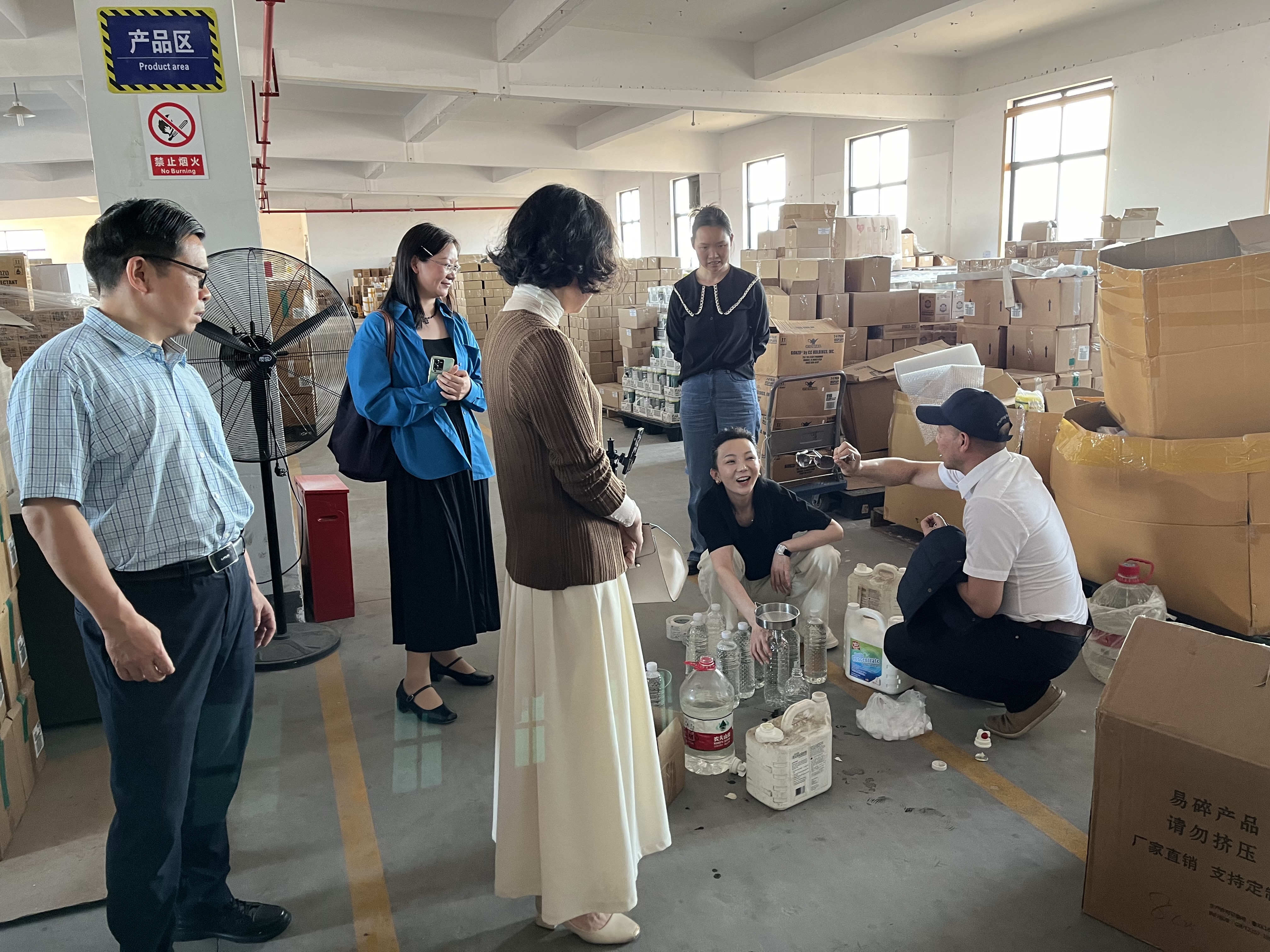 随后,肖和成董事长带领众人共同参观了他们的仓库,并现身直播间,一瞬间做起了“带货主播”。此次走访,也为学院未来的社会服务开展提供了新的思路和方向。