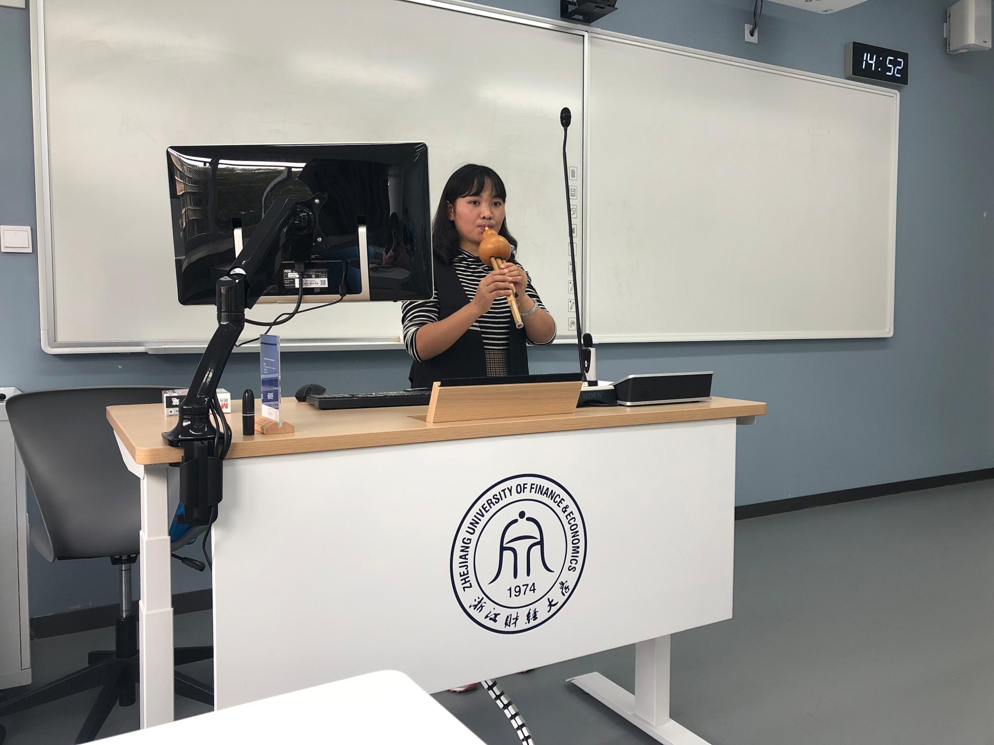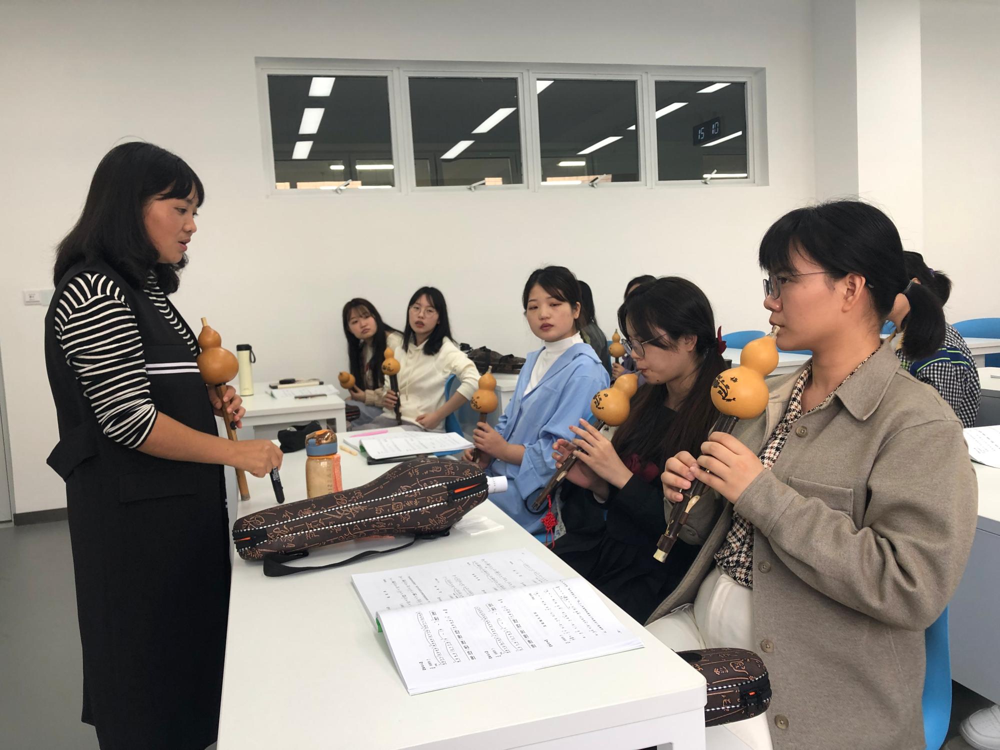 最后,张老师提到,作为汉语国际教育专业的硕士,同学们有责任推广传承中华传统文化,葫芦丝就是一个非常有民族特色的传播方向。在讲座的最后,张老师提出希望,希望同学们能够以葫芦丝为抓手,将中华之美带到世界各地。同学们认真聆听并现场与张老师进行了演奏技巧交流。