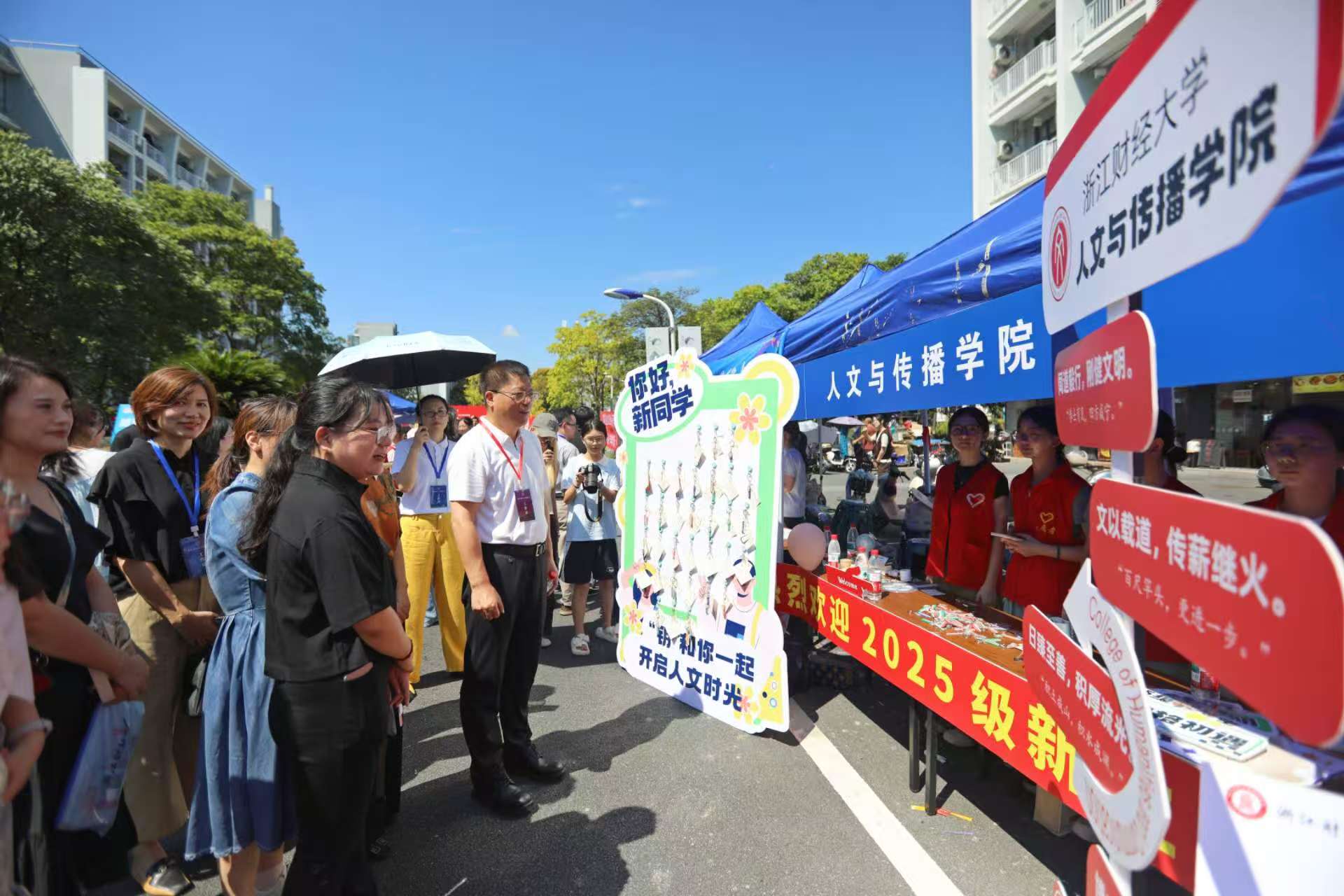 的迎新点位早已准备就绪。校党委书记、校长魏江,校党委副书记徐晓东一行专程来到91探花