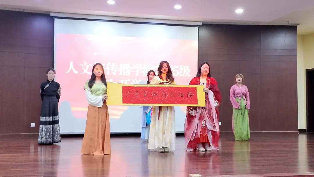 弦歌不辍,舞姿昂扬。朝气蓬勃的25级新生代表,以灵动的肢体与饱满的热情,献上一场精心编排的舞蹈表演,为开学典礼注入青春活力。裙裾翩跹,节奏明快,回望过往求学路步履坚实,展今朝大学途意气风发,他们的舞步轻盈而富有张力,每一个动作都传递着对新生活的期待和对未来的无限向往。落笔如云烟,挥毫见风骨,“少年当燃,薪火相传”八个大字随着激昂的旋律在新生代表的笔下绽放,鼓舞着每一位在场师生,共同开启校园的新征程。