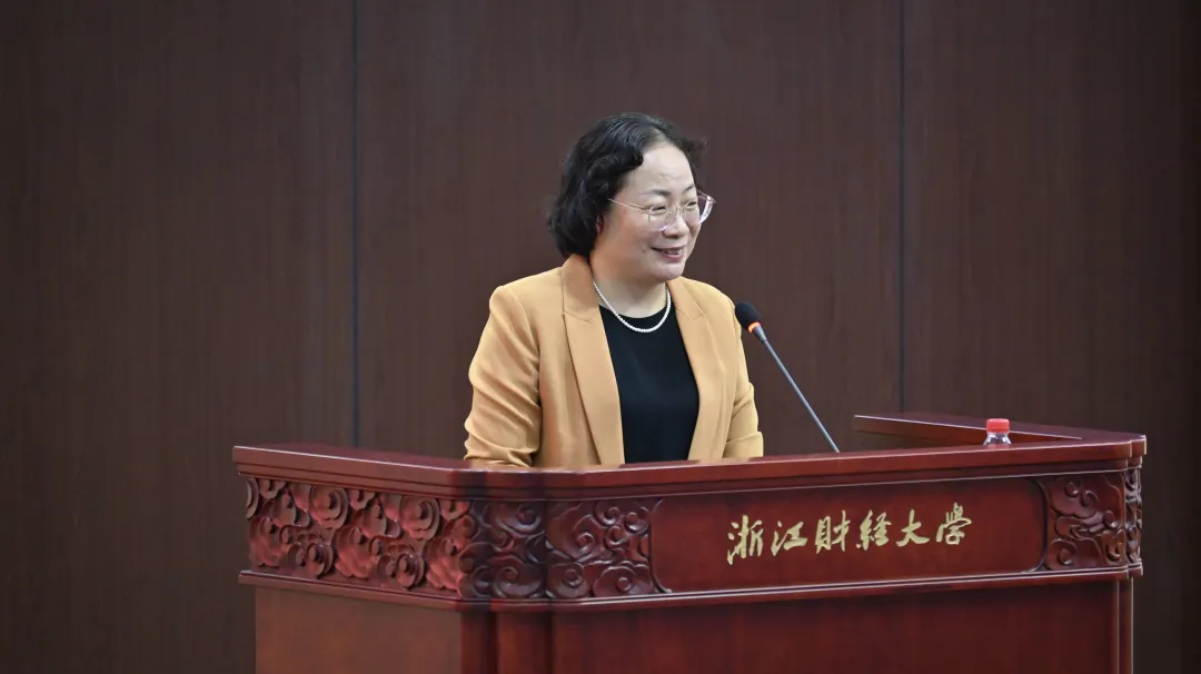 优秀校友,09级广告学优秀毕业生,现任时代强鹰·杭州创业发展促进会秘书长张加林致辞。发言中,张加林校友回忆了在校学生会工作的经历和丰富的校园生活,强调这些经历都为自己未来的创新创业成就积累了经验。然后,她为新生们分享了一些关于科技时代下的感想:一、坚定学校“进德修业,与时偕行”的校训,在科技浪潮下勇立潮头,引领时代发展。二、保持人文底色,成为一个在科技算法下拥有人文关怀的人。三、用文学赋能科技发展。四、积极拥抱变化,与科技共舞。张加林校友的发言让人文新生坚定用自己的活法定义世界的算法,用人文之光照亮未来之路。