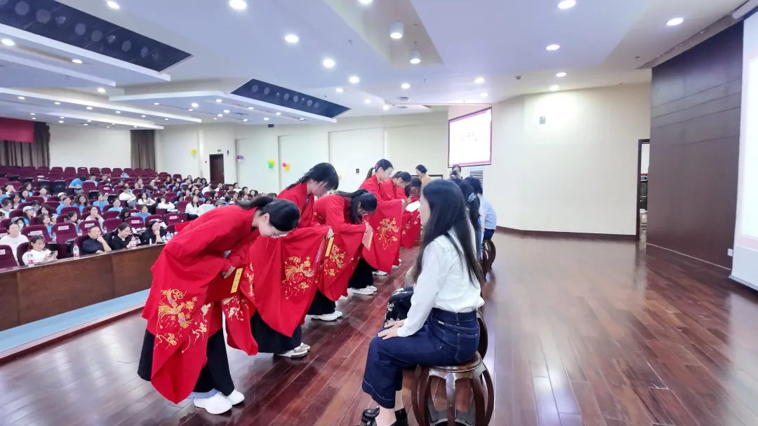凡学之道,严师为难。君子之学也,说义必称师以论道,听从必尽力以光明。肖丽华老师、范知欧老师、史亚娇老师、王文奇老师、李漪老师、常明芝老师六位老师作为教师代表上台入席。新生代表向师者行礼并呈上拜师帖,老师们也以小礼相回,新生们恭以大礼相报,而后三拜行拜师礼,老师代表朗诵示训,至此礼成。拜师礼承载着老师们对新生“以礼待人、以德修身、时刻自励、勿忘初心”的深切期盼,也为新生们的求学之路埋下了尊师重道、砥砺前行的种子。