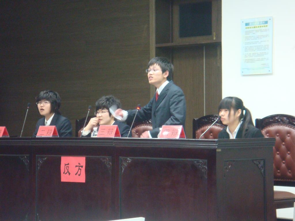 比赛由研究生周先平、会计学院07最佳辩手于舒倩、校辩论队最佳辩手王力超以及叶炜波组成强大的评委阵容。三支学院代表队参赛,并以两两对决的方式,分3场进行PK.