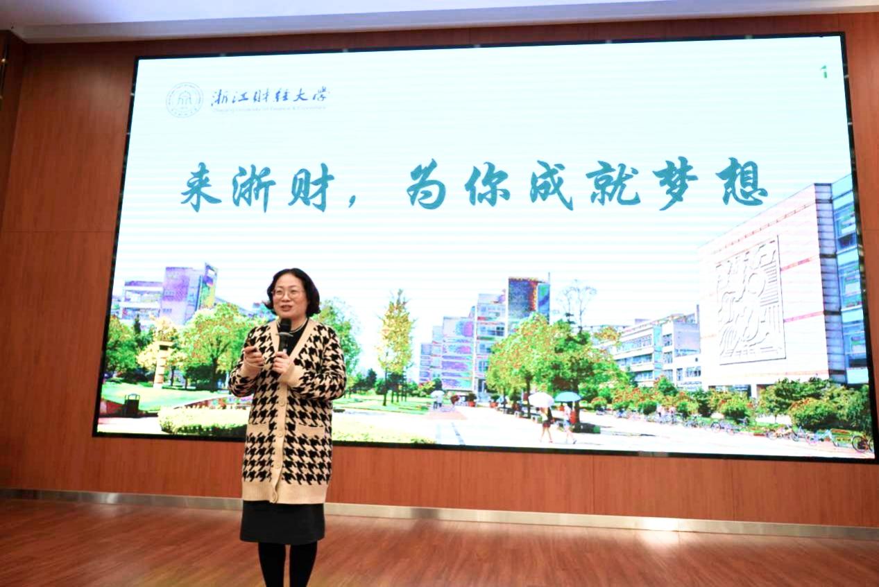 来财经,为你成就梦想。袁慧兰和徐艳妍分别向丽水中学学子介绍了学校的招生政策、学科建设、人才培养等方面情况,展望了财经学科未来趋势,强调了学校高擎新财经战略,致力于培养K(Knowledge)+MAQ(Morality, Ability, Quality)型人才:财经理论+数智/科技+人文精神。现场气氛热烈,丽中学子均表示对本次活动留下了深刻的印象。