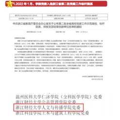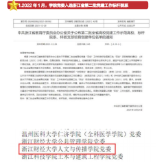 支部建设创新奖和优秀奖,教工第一支部入选全国党建工作样板支部、浙江省党建工作样板支部和全省高校首批“双带头人”教师党支部书记工作室, 2021年12月,学院党委入选为第二批全省党建工作标杆院系培育创建单位。