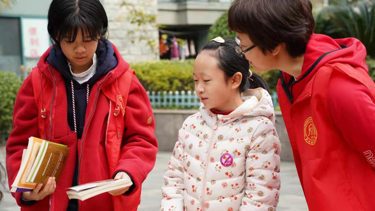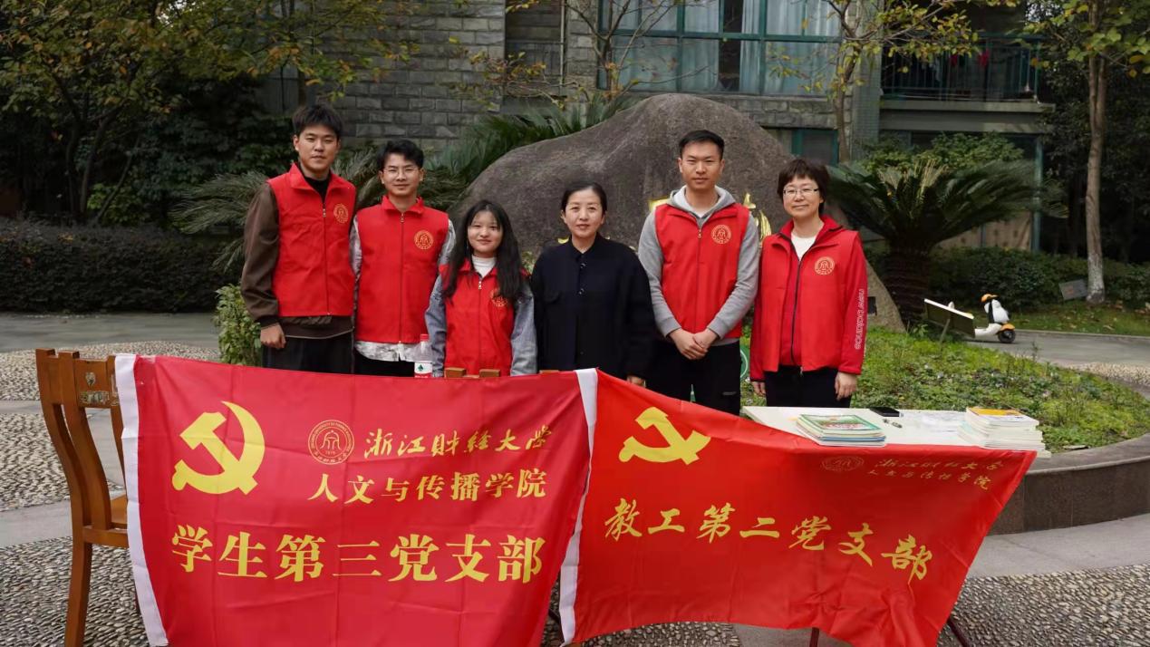 党委书记高燕、教工第二党支部书记王文奇、学生第三党支部书记万秋萌带领着学生党员王志憬、时燕丽、李志等在杭州钱塘区下沙文汇苑小区开展了捐书活动。