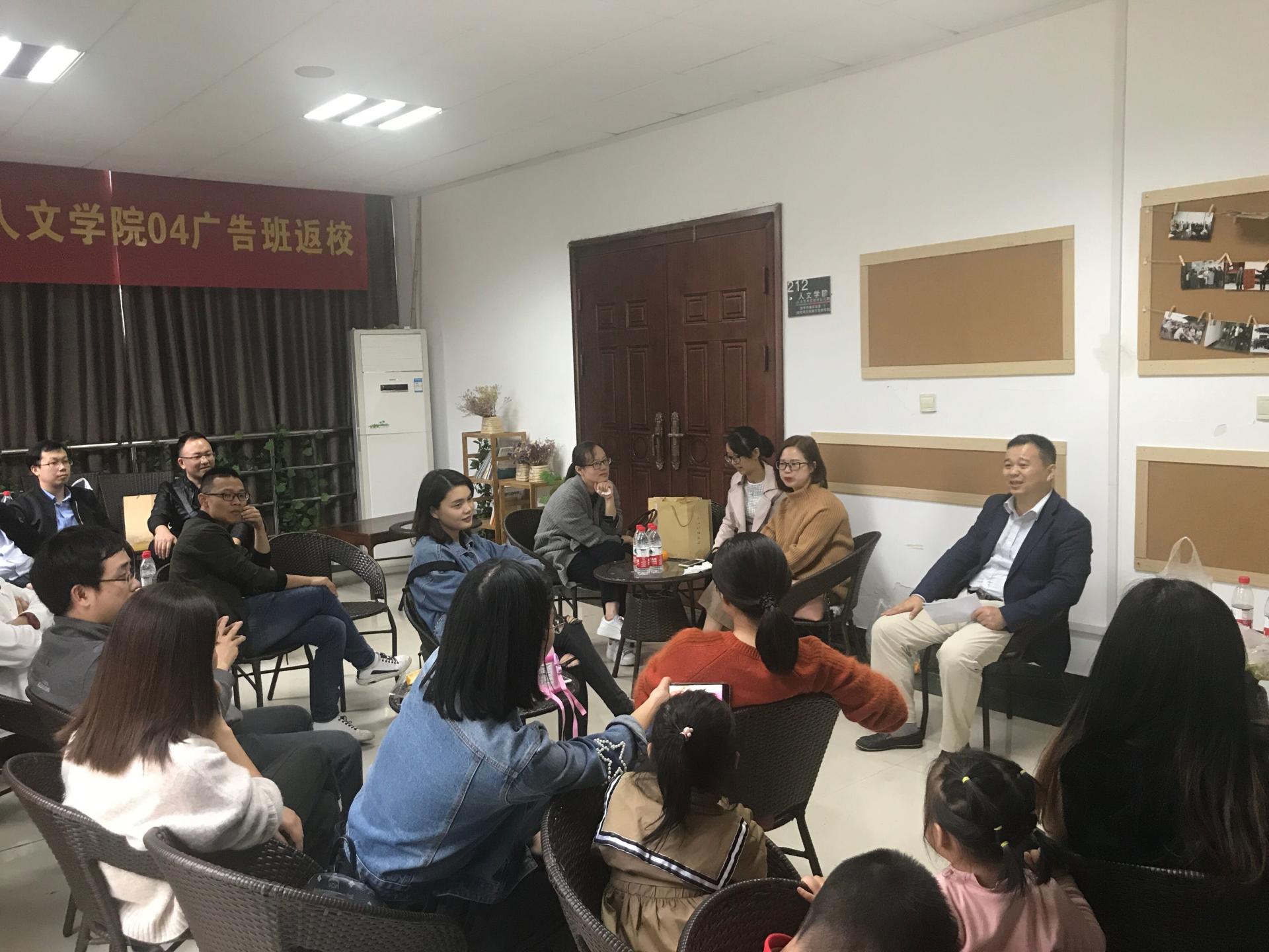 开展了“共叙师生情,共话同窗谊”毕业十周年师生座谈会和“我的故事”广告行业优秀校友创业经验分享会两个活动。学院校友分会秘书长、党委副书记吴玻,姜岳斌、吴智斌、崔霞、袁慧兰等教师和学院校友分会副秘书长、校友联络员章立峰及04广告、04文学、04东方广告1班、04级东方广告2班的校友和部分在校生参加。
