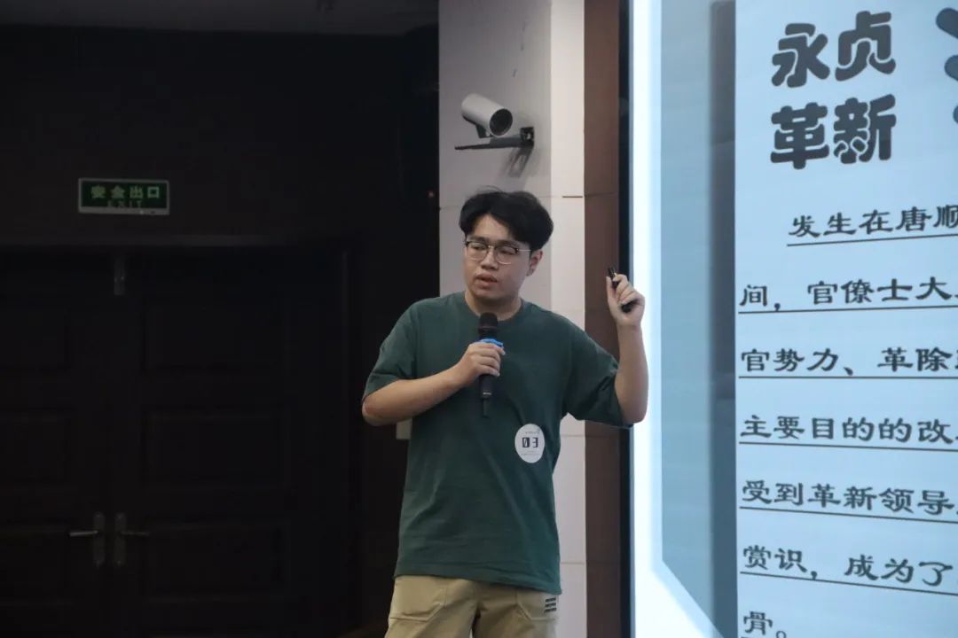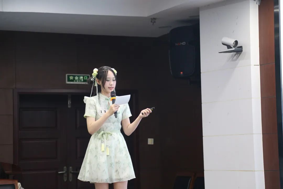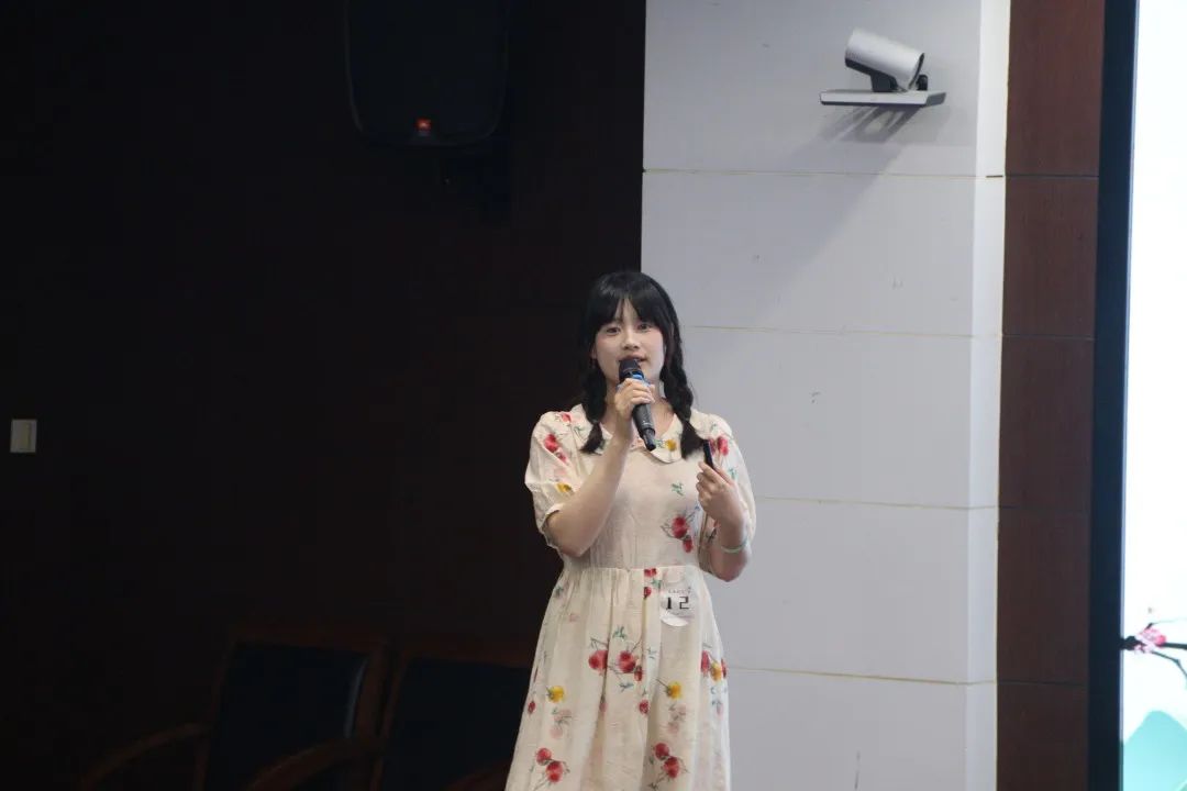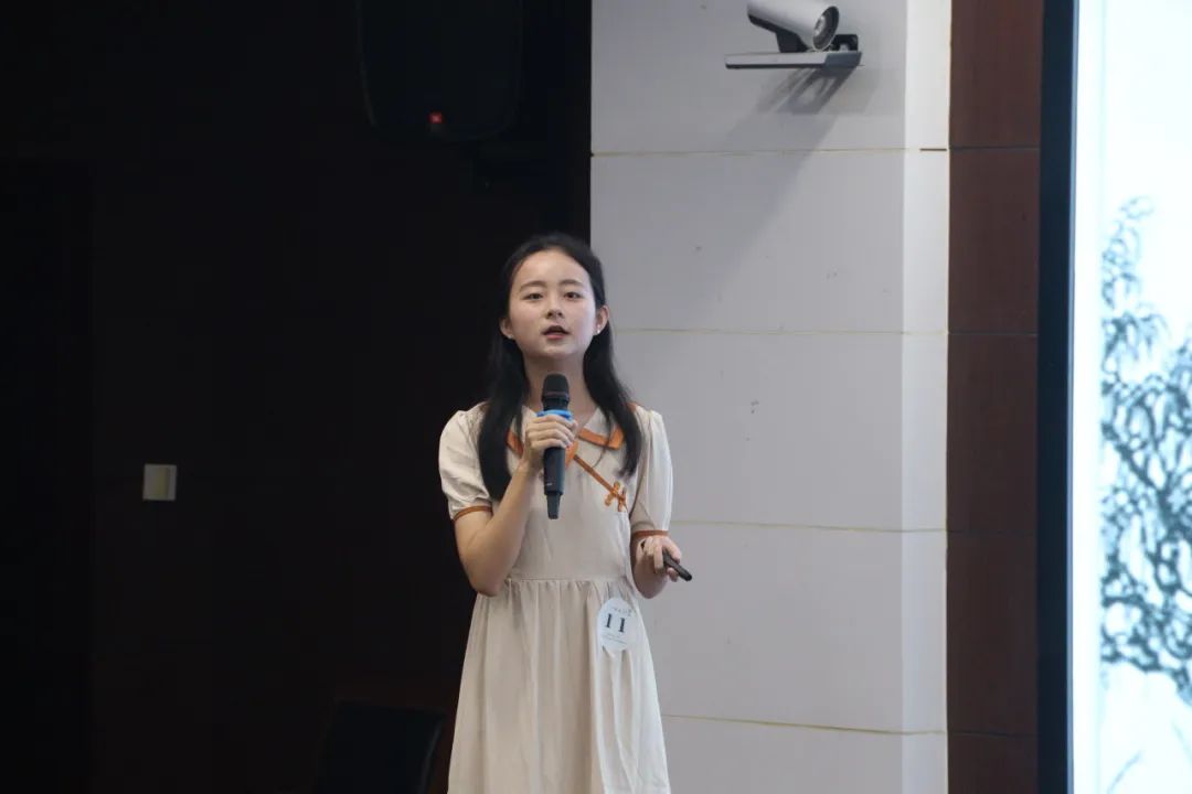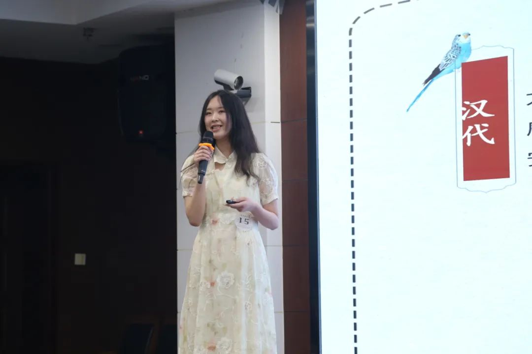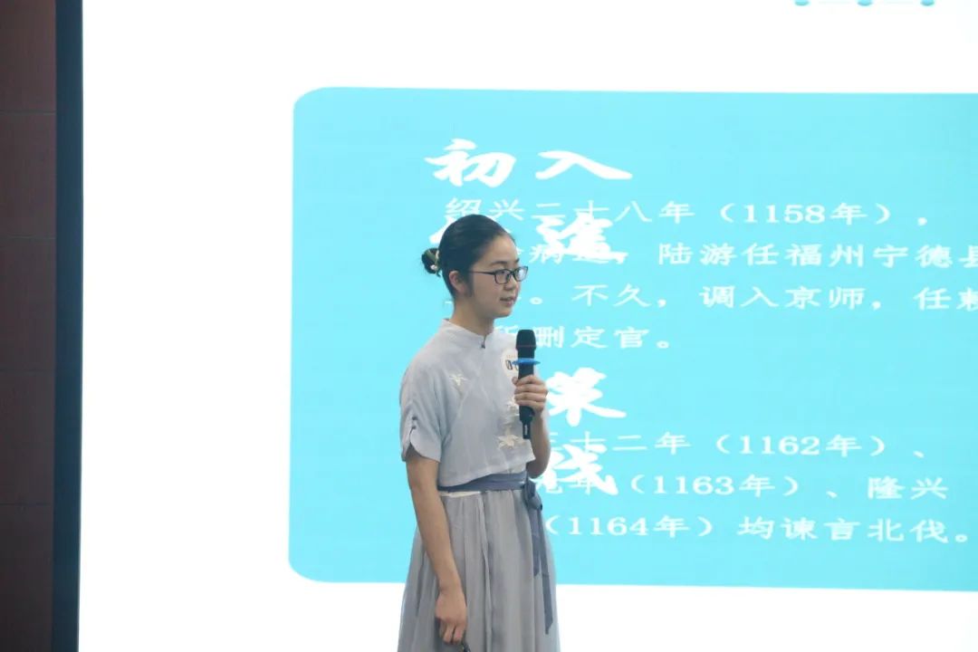 随着比赛拉开帷幕,陈杏佳选手一马当先,声情并茂地讲解《相见欢》。她从“谢”字出发,通过一条时光隧道引领我们穿越千年风尘,抵达金戈铁马、家国天下的时代,与“风流才子,误作人主”的词人心灵交汇,在相见之欢与离别之苦交织而成的旋律中共同探寻生命之谜。