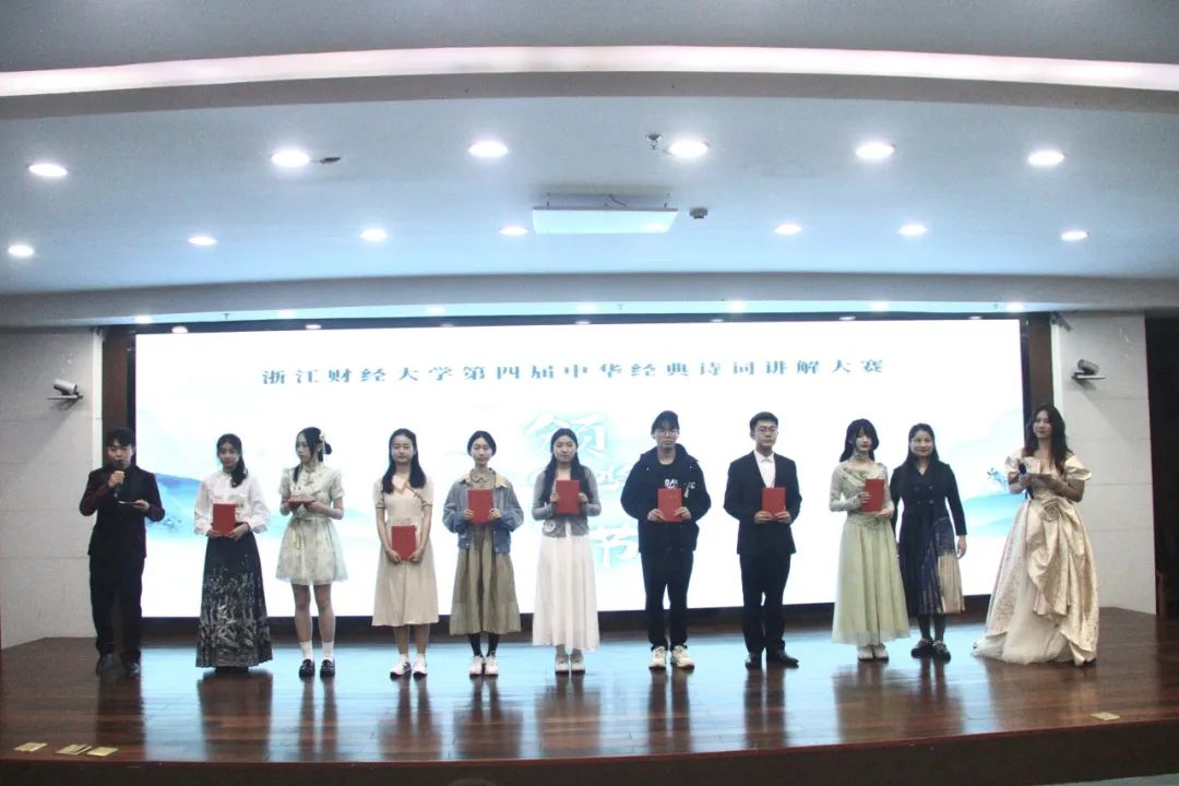本次比赛至此顺利落下帷幕,别具匠心的解读和与众不同的思考能使诗词歌赋焕活新生,能让千年竹简上的笔墨迸发出属于新时代的炫目色彩,浙财学子用或青涩或成熟的声音,展现了沉博绝丽的诗词之美,传承文脉精髓,使其历久弥新,赓续不绝。