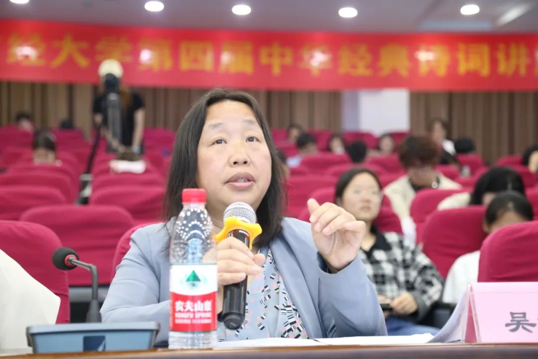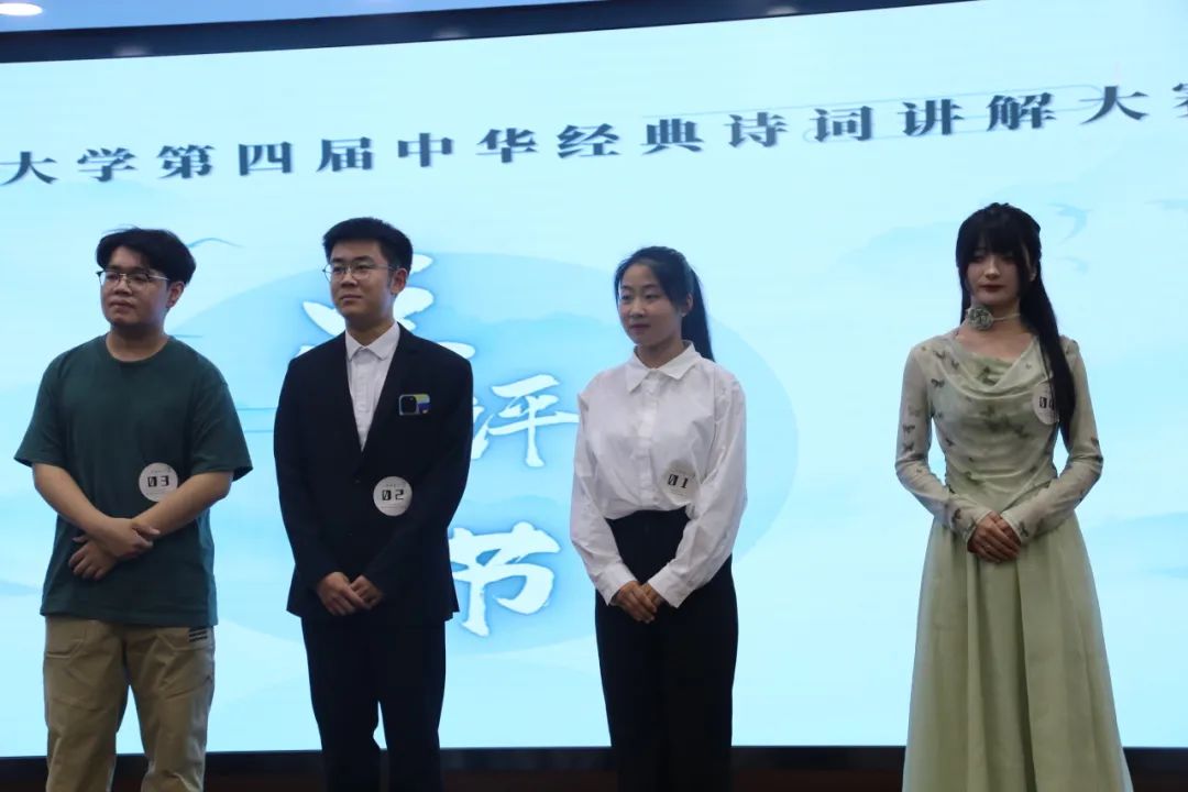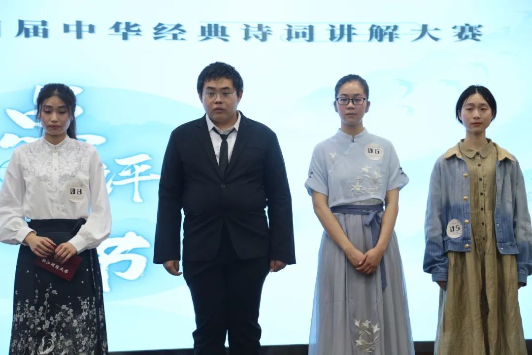 经过初赛海选,共有20位选手脱颖而出参加了本次决赛,比赛分为本科生和研究生两个组别。讲解过程中,选手们或激情洋溢,或深情款款,或如高山耸立,或似清泉流淌,都力求深入诗词主旨内核,拓展个性化的诠释角度,以新颖独到的解读方式,将自我经历、生活闲趣和辨证哲思融为一体,为观众们贡献出了一场风采各异、精彩绝伦的诗词盛宴。在诗词问答环节,选手们动用平常积累的文学常识冷静从容作答,展现出了自身的文学素养与知识储备。