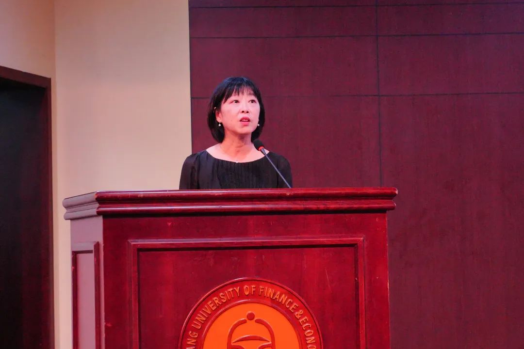 黄咏梅老师首先讲述了自己成为大学老师后的感悟与困惑,认为自己的责任是带学生认识感受人与自我、他人和世界的关系。接着回忆大学生涯中阅读《安娜·卡列尼娜》时的沉浸幸福感,指出阅读是传统的沉浸式体验方式,大学四年值得沉浸式体验的不光有阅读,希望大家找到兴趣获得专注,养成习惯。以套改马尔克斯《百年孤独》的开场白作为结语,祝愿同学们在浙财大终有所获。