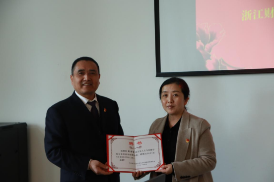 专题党课前,学院党委书记高燕向蒋鑫富老师颁发了91探花